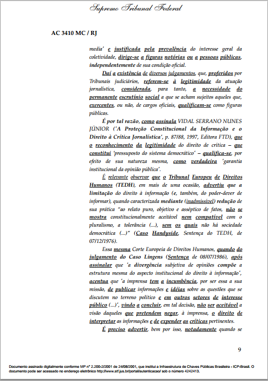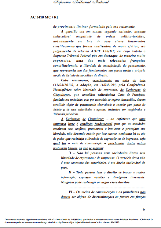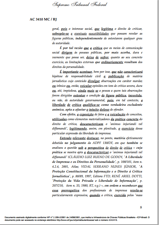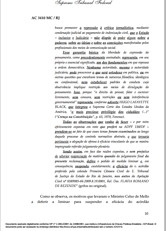 Somente no STF o jornalista Paulo Henrique Amorim conseguiu suspender a execução da ação de indenização movida por Daniel Dantas. A liminar de Ricardo Lewandowski é um brado lúcido a favor da liberdade da imprensa. Recheada de citações democráticas e avançadas, a decisão é um primor. Confira a parte final. OG.