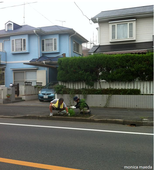 (foto-OG). Monica Maeda. No Japão quem suja, limpa, tanto no seu local de trabalho como nas ruas. Não há gari, o gari é você, como na imagem (Tóquio, 4.8.13, 8h). O nosso Ganbatte kudasai! – se esforce, dê o seu melhor e o Fai il bravo! Fai la brava! dos italianos.